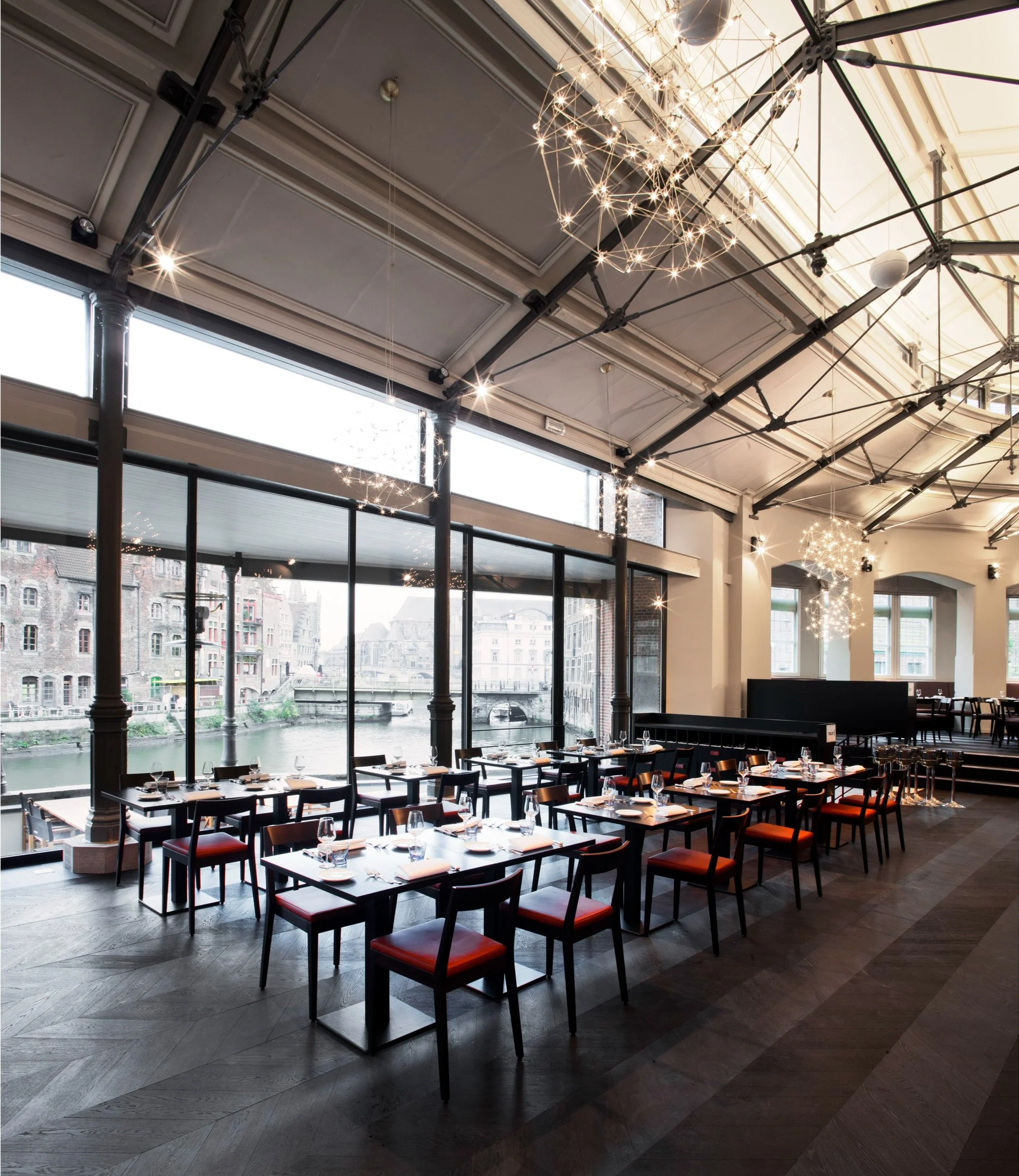 De strategische ligging van de Oude Vismijn, tegenover het iconische Gravensteen en aan de samenvloeiing van de Lieve en de Leie, maakt deze locatie ideaal voor evenementen. De grootste zaal, 'De Markt', biedt ruimte aan maximaal 850 personen en wordt gekenmerkt door majestueuze kolommen en hoge plafonds. Daarnaast beschikt de 'Eau’rangerie' over een inpandig terras met uitzicht op het water, perfect voor recepties en zomerse bijeenkomsten.